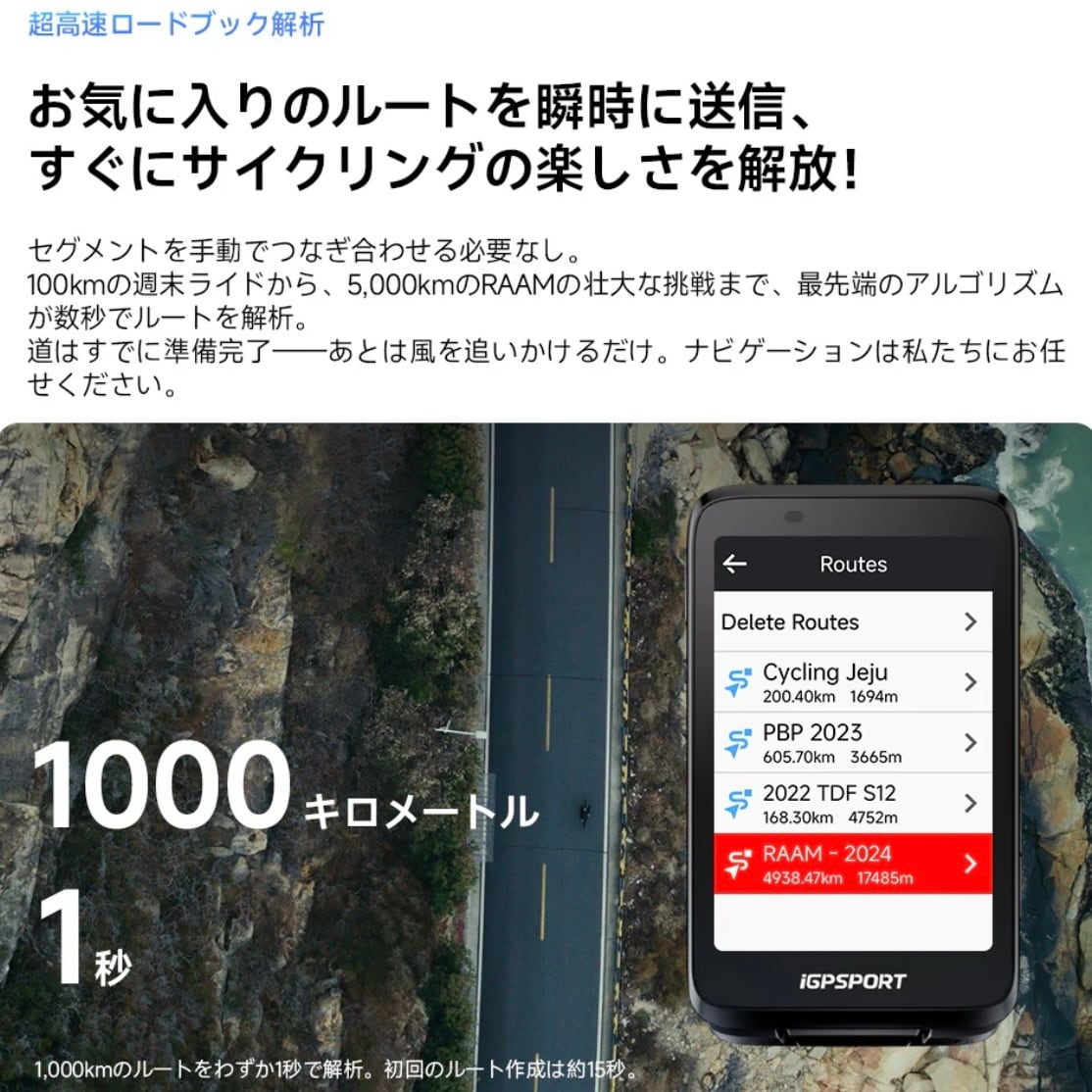 週末の100kmアドベンチャーでも、5,000kmにおよぶRAAMのような過酷なライドでも、最先端のアルゴリズムが数秒でルートを解析します。